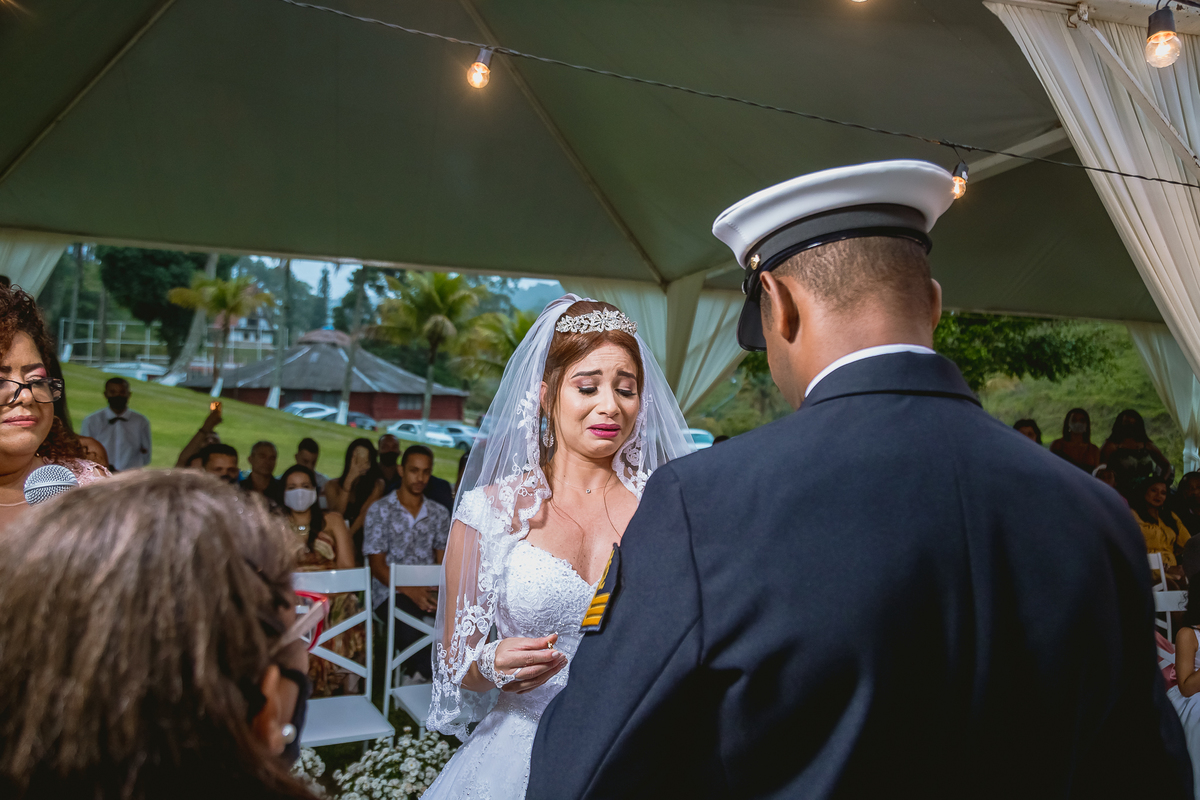 Uma cerimônia realizada dentro de duas tendas separadas por um caminho espelhado onde os noivos se encontraram e emocionaram...