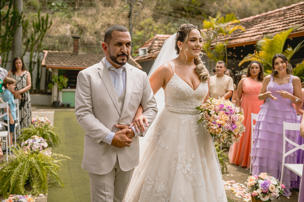 Numa manhã de domingo, aquele dia lindo de sol foi realizada a cerimônia e logo após uma recepção calorosa com muita música.